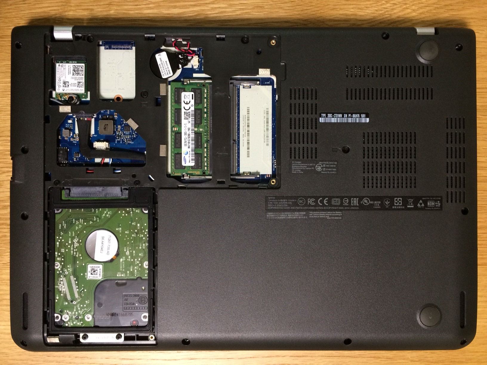 SSDはメーカーオプションだとバリ高いので、自分で載せ替えるのが基地です。製品によっては保証が効かなくなることもあるのですが、E450は分解に至る過程でとくにそういうシールも見当たらなかったのでメーカー的にもどーぞどーぞと言ったところでしょうか。