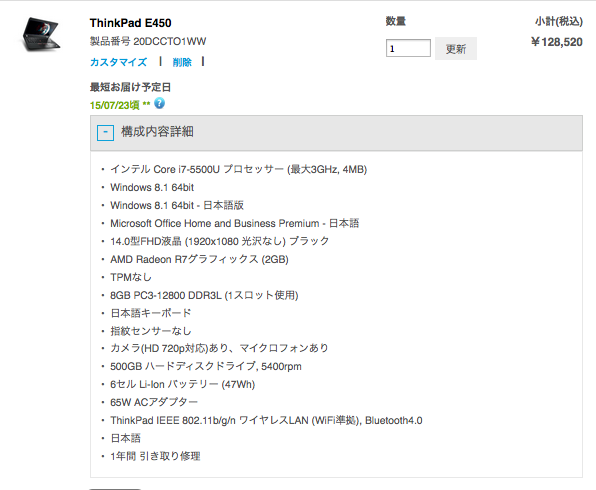 買ったのはお伝えしていたとおりLenovoのThinkpad E450のハイスペック仕様です。