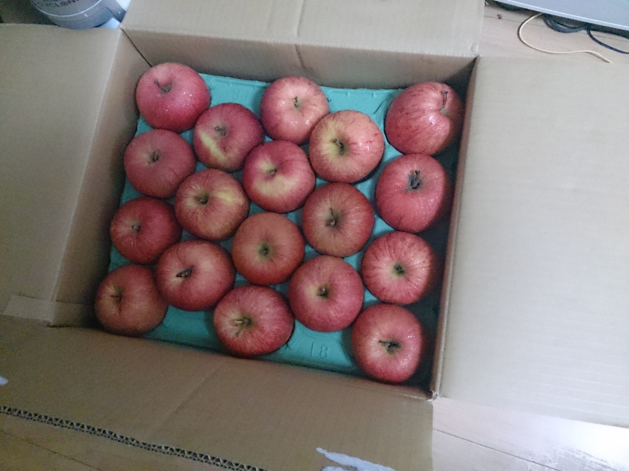 届いた月の一ヶ月は毎日りんご食べてたわwおかげで朝ごはんには苦労しなかった。写真では少しだがこの下に何層にもわたってりんごが並んでいる。最初は多すぎてジャムにしようかと思ったが結局全部そのまま食べた。果物の栄養価は高い。健康に生きた一ヶ月だったと思う。りんごだけで過ごした日も多くあった。